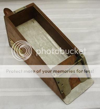2127. A plumber's container for holding grease, rosin, and flour, all were necessary for the soldering process of assembling the joints of lead pipe. A similar grease and rosin box can be seen on this page.